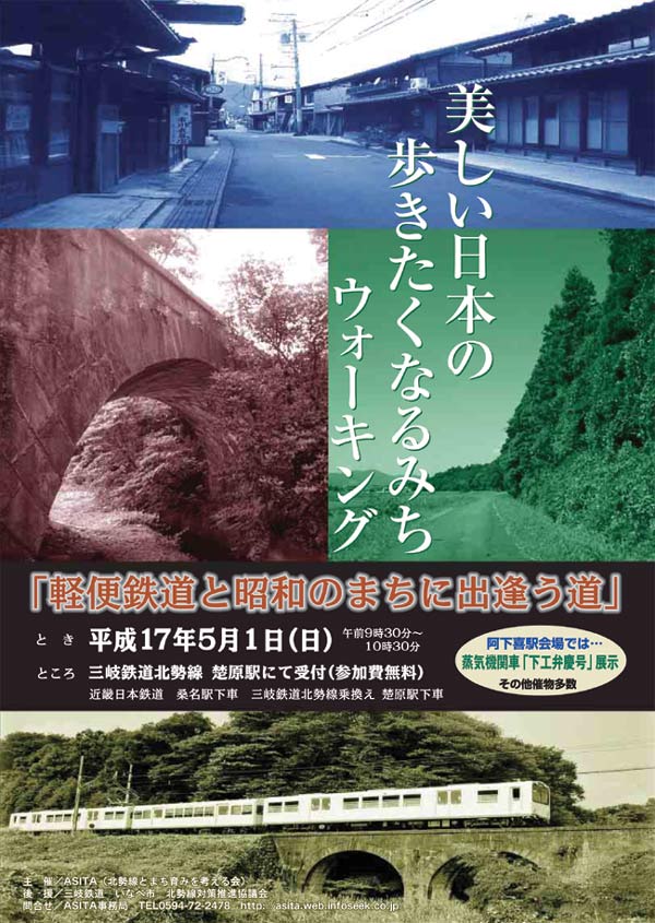 「軽便鉄道と昭和のまちに出逢う道」を阿下喜駅まで歩き、阿下喜駅で行うイベントを楽しんでいただきます。
