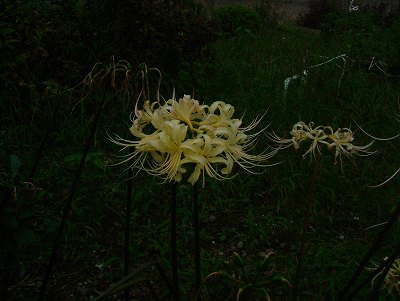 白彼岸花 畦道に珍しく透き通った白の花でした |