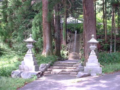| 東林寺看板?石の真ん中に東林寺と書かれています。 | 東林寺の表玄関。危なくないよう手すりも付きました。 | ||