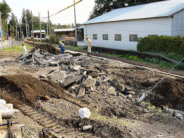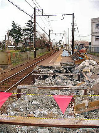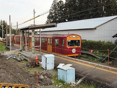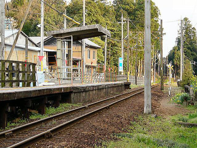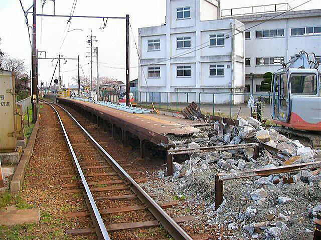 4月12日の六石駅。 ここには軽便鉄道として発足した頃の遺跡が残っていたのに…。