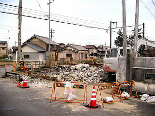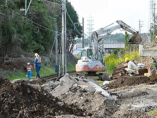 長宮駅の解体作業。 前日まで使用していた駅。 4月1日にはこのとおり。