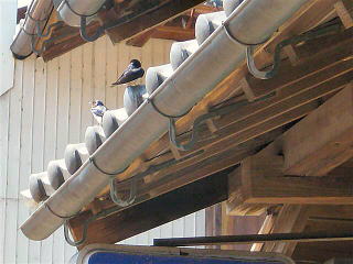 | ツバメは近くに寄っても逃げません。 通りすがりの奥さんが、「あらホント、逃げないねぇ」と声をかけてくれました。 |