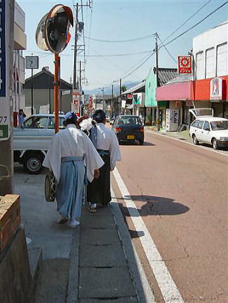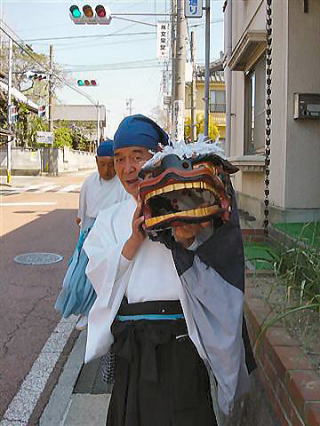 撮影の合間に出会った伊勢大神楽のおじいさん。 フォトジェニックなオーラを放っていました。少し追いかけてみましたが、時間切れ。く〜!残念!! 伊勢大神楽は阿下喜の春の風物詩なのだろうか?