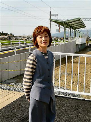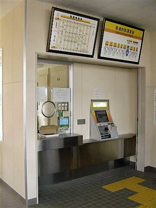 北勢線初の女性駅長さん。 駅には自動改札と自動券売機が備えてあります。