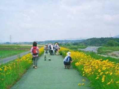 員弁川沿いの散歩道を行く