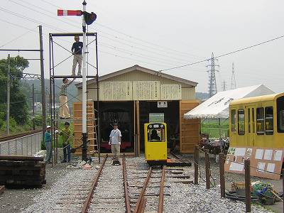 信号機班は梯子の取り付けのために足場を組み立てました