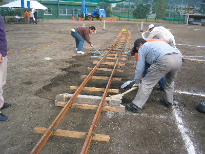 レール敷設中