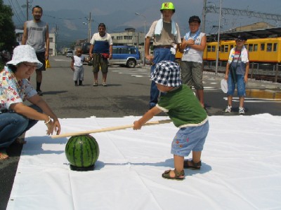 スイカ割大会を行いました。今日は大変暑い日でした。