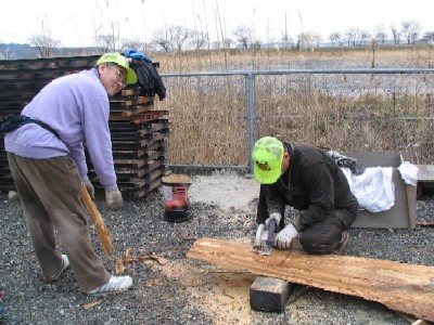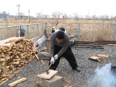 弁慶号の焚き物作りに勢がでます。