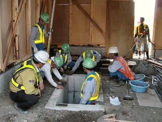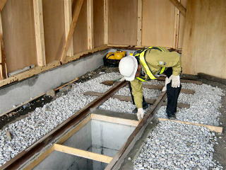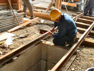 | ピットへのレールの固定作業。 |