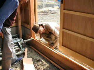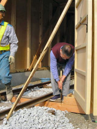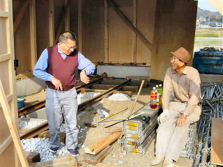 | 坂口建具店と安藤建材のおじさんの2ショット。明日は扉の微調整をしていただくそうです。 |