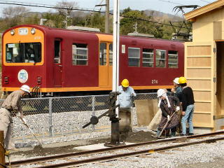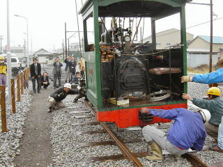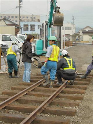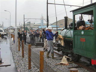 | 夕方4時。現地残留部隊の果てしない労働は続く。 三岐鉄道ウィステリア鉄道の新山氏にはたいへんお世話になりました。ありがとうございました。 |