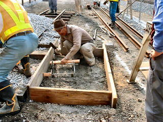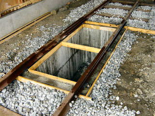 | ピットにセメントで枠を作りました。レールの下にもセメントが入りました。 |
