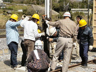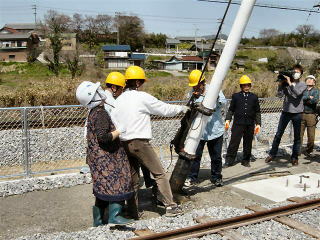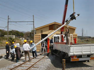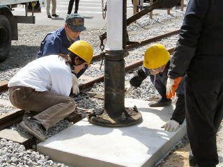 | 腕木式信号機の取り付け作業 |