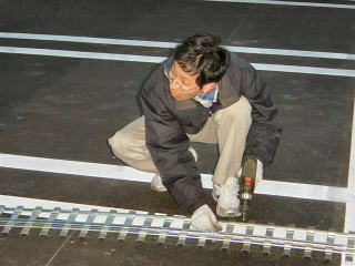 | 線路は枕木を固定してから曲げに入ります。 |