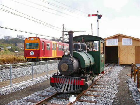 | 北勢線と弁慶号。信号機と機関車倉庫も揃って阿下喜駅の新たな名所が歩みだしました。 mani@氏 撮影 |