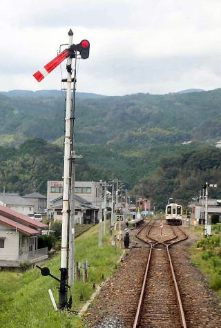 この腕木式信号機は、2004(平成16)年1月26日まで、三重県白山町のJR名松線家城駅で使用されていました。