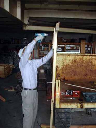 荷台部分の支柱を利用し、基準となる柱を立て、