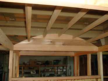 | 半月型の屋根用梁に切りかぎを設け、そこに屋根の骨を縦に通してあります. |
