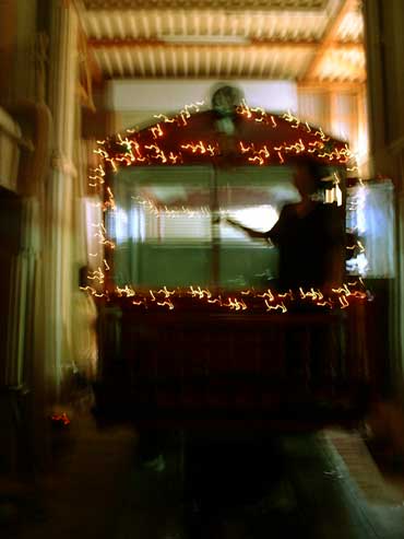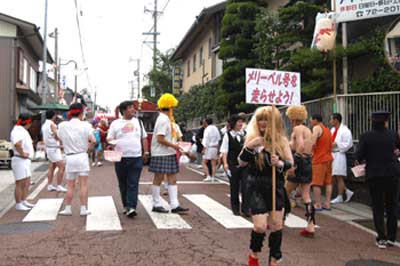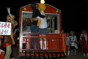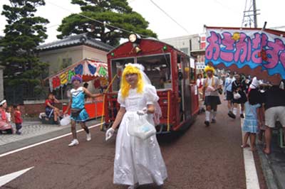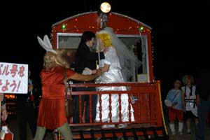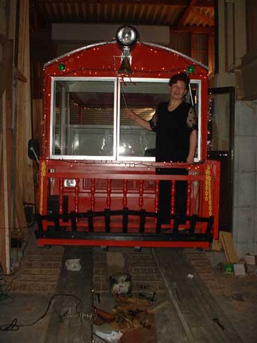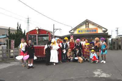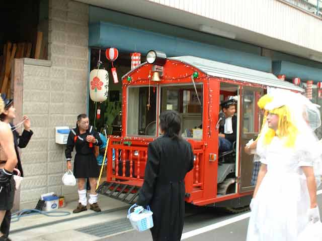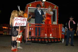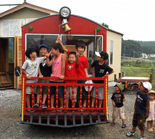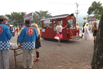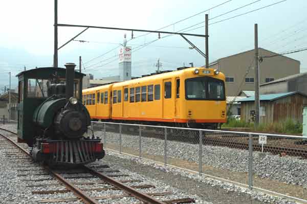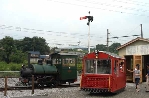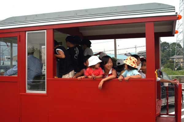 | 下工弁慶号と並ぶ、こどもを乗せた”メリーさん”。発車オーラ〜イ! |
