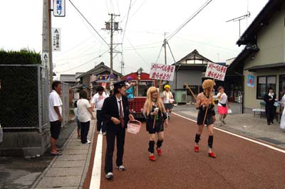 | みんなで回転作業中です。こどもも珍しそうに見学。(中にはよそ見している子も、、、) |