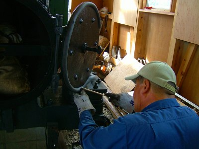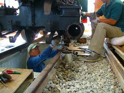 機関車の下側の作業は